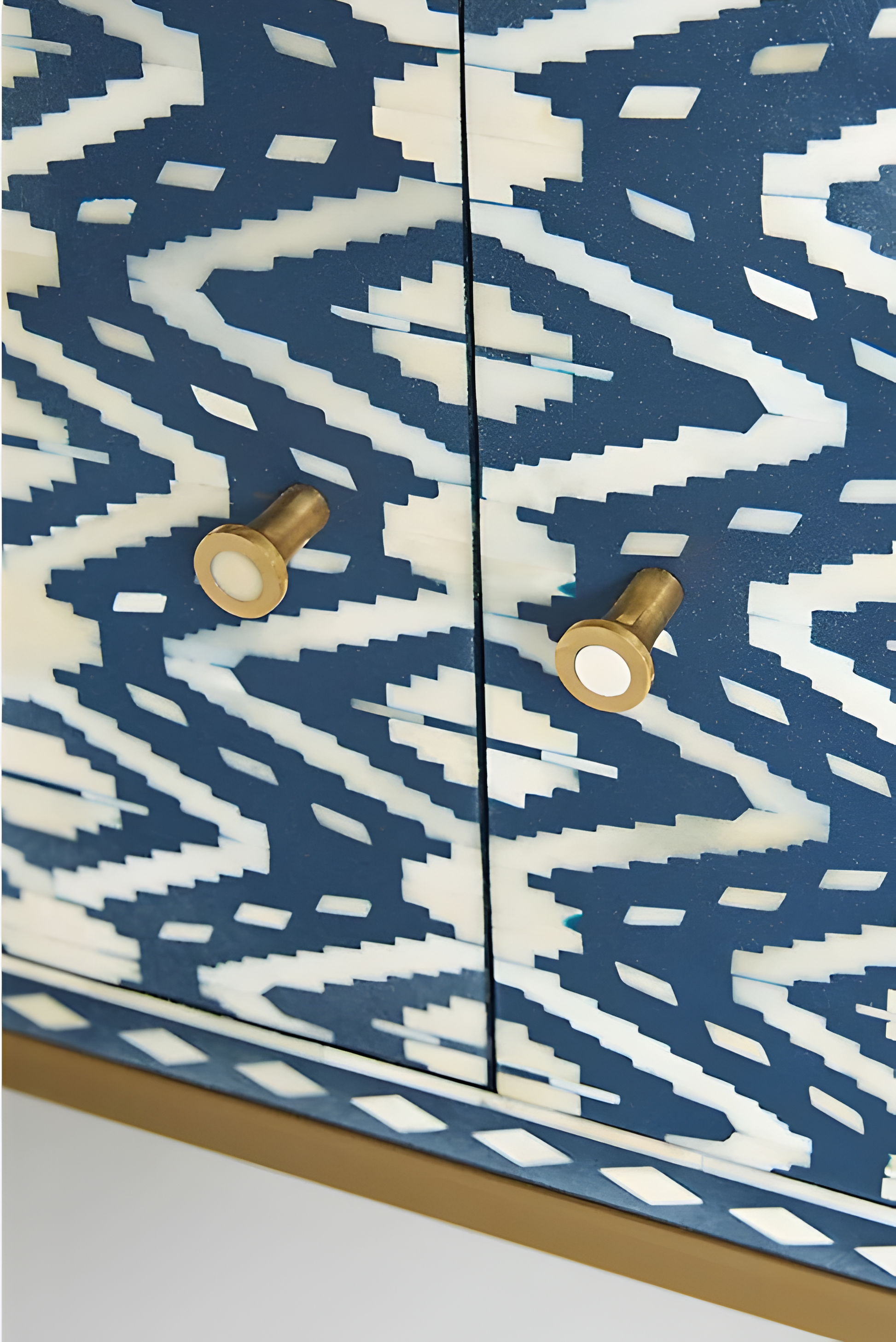 INLAY IKAT DESIGN MEDIA CONSOLE INDIGO BLUE