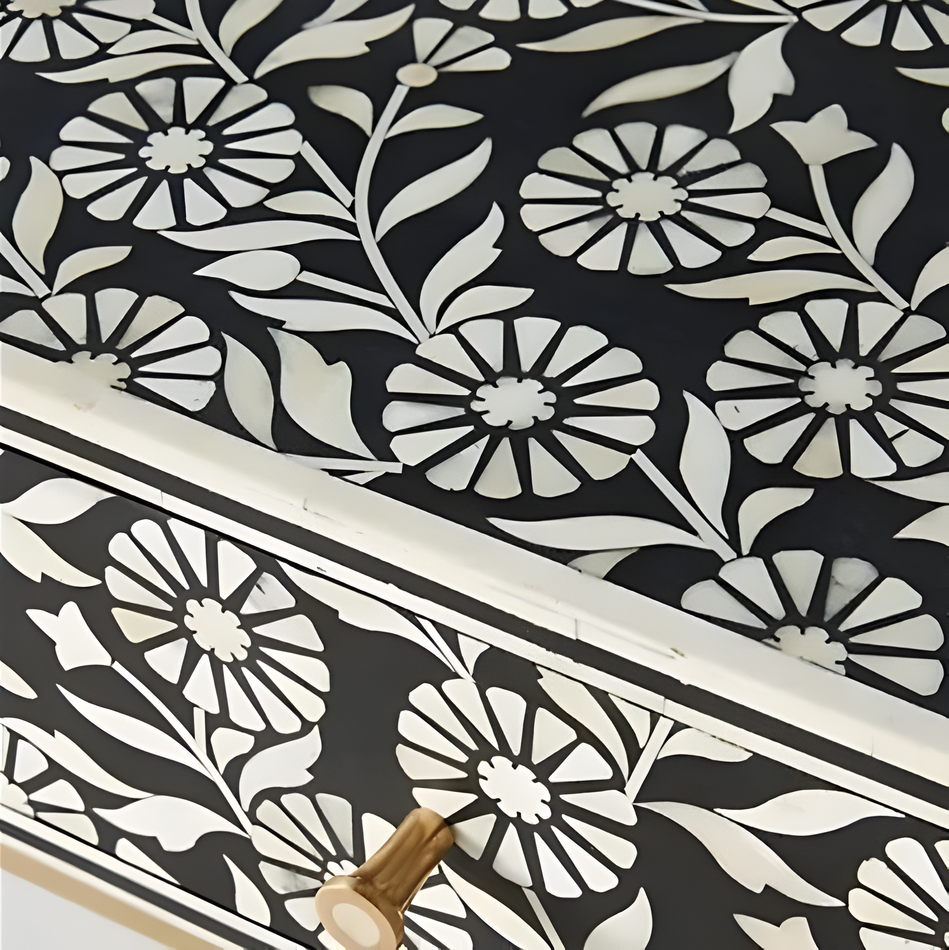 Moroccan Bone Inlay 3 Drawer Console Black Bone Inlay Desk Bone inlay furniture